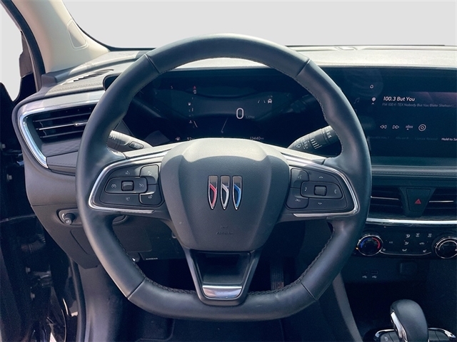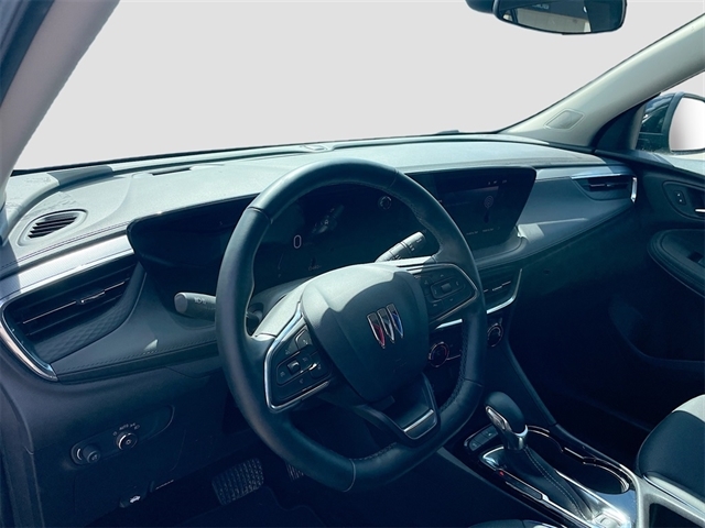 2 USB Ports (1 Type-A, 1 Type-C), 2-Way Power Driver Lumbar Control, 4-Way Manual Passenger Seat Adjuster, 4-Wheel Disc Brakes, 5.45 Final Drive Axle Ratio, 6 Speakers, 6-Way Manual Driver Seat Adjuster, 8-Way Power Driver Seat Adjuster, ABS brakes, Air Conditioning, Alloy wheels, AM/FM radio: SiriusXM, Auto High-beam Headlights, Automatic temperature control, Brake assist, Bumpers: body-color, Comfort Package, Compass, Delay-off headlights, Driver door bin, Driver vanity mirror, Dual front impact airbags, Dual front side impact airbags, Electronic Stability Control, Emergency communication system: OnStar and Buick connected services capable, Enhanced Performance 6-Speaker System, Flat-Folding Front Passenger Seatback, Front anti-roll bar, Front Bucket Seats, Front Center Armrest, Front License Plate Bracket, Front reading lights, Front wheel independent suspension, Fully automatic headlights, Heated door mirrors, Heated Driver & Front Passenger Seats, Heated Steering Wheel, Illuminated entry, Knee airbag, Leatherette Seat Trim, Low tire pressure warning, Occupant sensing airbag, Outside temperature display, Overhead airbag, Overhead console, Panic alarm, Passenger door bin, Passenger vanity mirror, Power door mirrors, Power Liftgate, Power steering, Power windows, Preferred Equipment Group 1SD, Radio data system, Radio: Audio System w/AM/FM, Rear Center Armrest, Rear reading lights, Rear side impact airbag, Rear window defroster, Rear window wiper, Remote keyless entry, Ride & Handling Suspension, Security system, SiriusXM Trial Subscription, Speed control, Speed-sensing steering, Split folding rear seat, Spoiler, Sport steering wheel, Steering wheel mounted audio controls, Tachometer, Telescoping steering wheel, Tilt steering wheel, Traction control, Trip computer, Variably intermittent wipers, Wheels: 18`` Gloss Black Aluminum, Wireless Apple CarPlay/Wireless Android Auto. Recent Arrival!