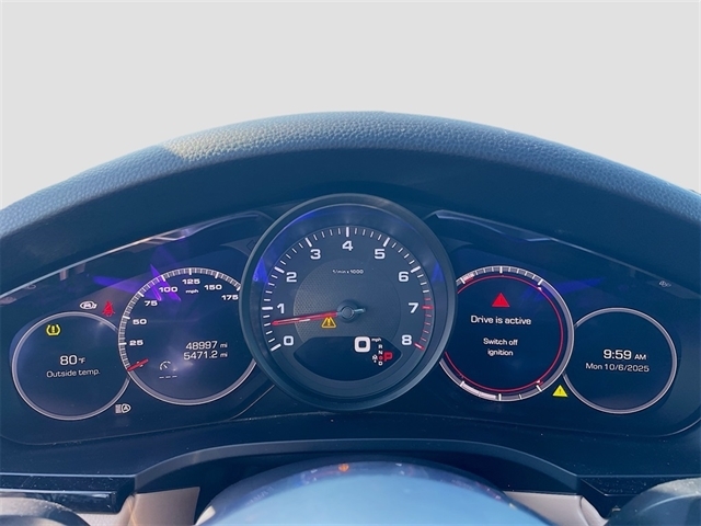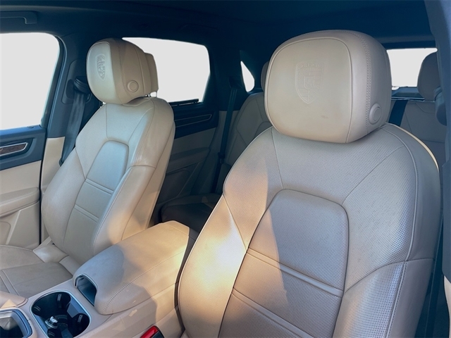 Black w/Partial Leather Seat Trim, 10 Speakers, 4-Wheel Disc Brakes, 8-Way Power Seats, ABS brakes, Adaptive suspension, Air Conditioning, Alloy wheels, AM/FM radio: SiriusXM, Apple CarPlay, Automatic temperature control, Axle Ratio: TBD, Brake assist, Bumpers: body-color, Delay-off headlights, Driver door bin, Driver vanity mirror, Dual front impact airbags, Dual front side impact airbags, Electronic Stability Control, Exterior Parking Camera Rear, Four wheel independent suspension, Front anti-roll bar, Front Bucket Seats, Front Center Armrest, Front dual zone A/C, Front reading lights, Fully automatic headlights, Garage door transmitter: HomeLink, Heated door mirrors, Illuminated entry, Knee airbag, Leather Shift Knob, Low tire pressure warning, Navigation System, Occupant sensing airbag, Outside temperature display, Overhead airbag, Overhead console, Panic alarm, Partial Leather Seat Trim, Passenger door bin, Passenger vanity mirror, Porsche Communication Management, Power door mirrors, Power driver seat, Power Liftgate, Power passenger seat, Power steering, Power windows, Radio data system, Rain sensing wipers, Rear anti-roll bar, Rear fog lights, Rear reading lights, Rear seat center armrest, Rear side impact airbag, Rear window defroster, Rear window wiper, Remote keyless entry, Security system, Speed control, Split folding rear seat, Spoiler, Steering wheel mounted audio controls, Tachometer, Telescoping steering wheel, Tilt steering wheel, Traction control, Trip computer, Turn signal indicator mirrors, Variably intermittent wipers, Voltmeter, Wheels: 19`` Cayenne, Black w/Partial Leather Seat Trim. Recent Arrival!